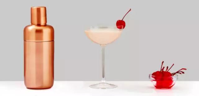 將所有原料倒入搖壺中,加上冰塊,搖至壺外壁結(jié)霜,濾入蝶形香檳杯中,用櫻桃裝飾。