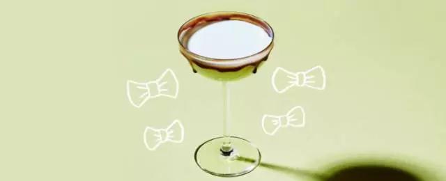 本來是白巧克力馬天尼,將杯邊粘上一圈黑巧克力,變成了這款黑領(lǐng)結(jié)馬天尼了。