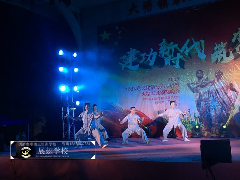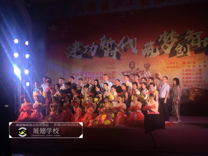 2018年5月5日,佛山展翅調酒咖啡西點培訓學校的調酒師參加了2018三水區送文化活動到基層暨大塘工匠頒獎晚會,并作為表演嘉賓為現場獻上了一場精彩的花式調酒表演。勞動是創造幸福最美的歌謠,向偉大的勞動人民致敬。接下來,讓我們一起看看當晚的現場表演吧。