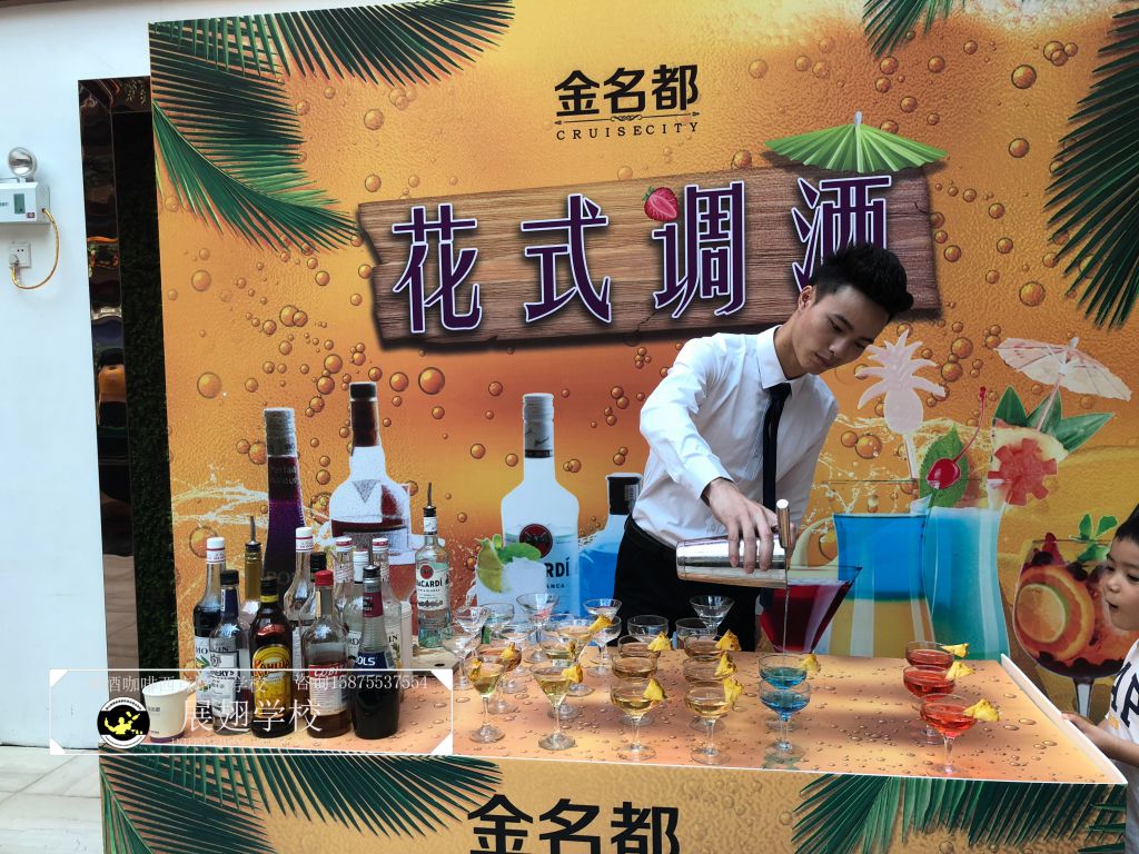 #恒大•金名都啤酒節花式調酒表演實踐活動#炎炎夏日,如此高溫的佛山像是火爐一樣,恨不得每天在冰箱里渡過,可就在這樣炎熱的氣候里學員們還是堅持不懈的外出做活動,即能開闊視野,又能鍛煉自我,讓夢想化作現實的搖籃,學員們的未來 我們攜手播種希望;“佛山展翅調酒咖啡西點培訓學校",我們伴你一路而行。希望堅持不懈的努力使每一位學員都能站在夢想的舞臺成為眾人的焦點