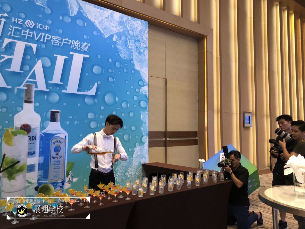 2018年6月24日,“盛世芳華 感恩匯聚”匯中VIP客戶晚宴在廣州南豐朗豪酒店隆重舉行。佛山展翅咖啡調(diào)酒西點培訓(xùn)學(xué)校的調(diào)酒師學(xué)員也開啟了一場充分展示調(diào)酒才藝的芳華實踐之旅!從宴前準(zhǔn)備、擺酒、調(diào)酒到嘉賓品酒,臺上的佳音妙舞,臺下的喜氣洋洋,都離不開魔力雞尾酒帶動起空氣分子的歡悅感和活躍力。本次學(xué)員實踐贏得全場嘉賓的好評!