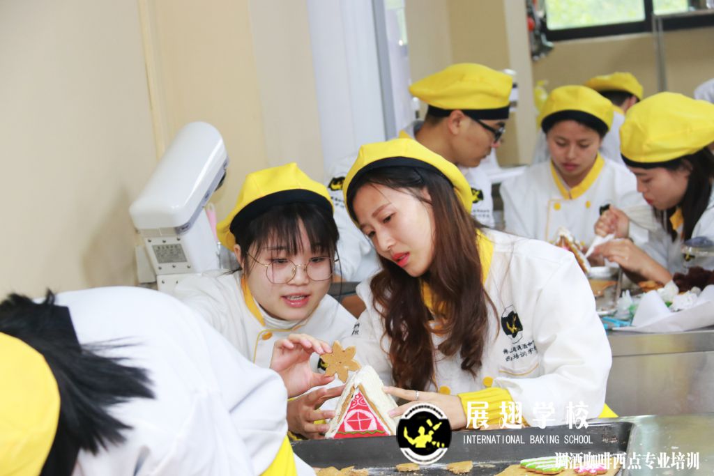 接下來看一下佛山展翅調酒咖啡西點培訓學校烘焙班制作姜餅屋及姜餅花絮: