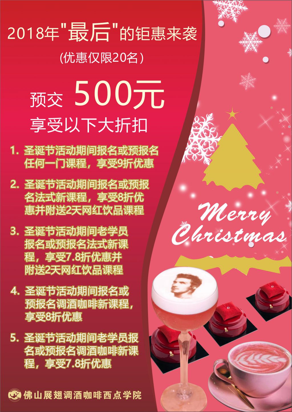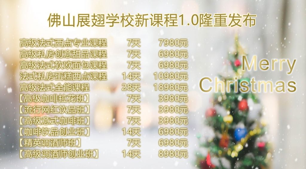 2. 圣誕節活動期間報名或預報名法式新課程,享受8折優惠并附送2天網紅飲品課程