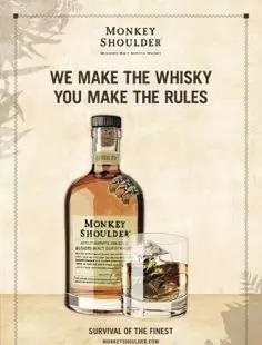 同樣采用小批量釀造,由三款來自斯佩塞地區(qū)的優(yōu)質(zhì)單一純麥威士忌調(diào)和而成的Monkey Shoulder,其名字靈感來源于因早期蘇格蘭工業(yè)化發(fā)展不夠發(fā)達(dá),酒廠工人在釀造過程中需要徒手翻麥,長期的單一重復(fù)勞動(dòng)很容易造成肩部肌肉勞損的這一特殊現(xiàn)象。 在向傳統(tǒng)蘇格蘭威士忌釀造工藝傳達(dá)敬意和傳承的同時(shí),Monkey Shoulder也注重雞尾酒文化和街頭文化,不斷鼓勵(lì)創(chuàng)新,使其頗受業(yè)內(nèi)的喜愛與推崇。試飲推車、花果山、凍檸杯、konga藥壺、Ispoon等新理念也讓威士忌變的更為有趣。