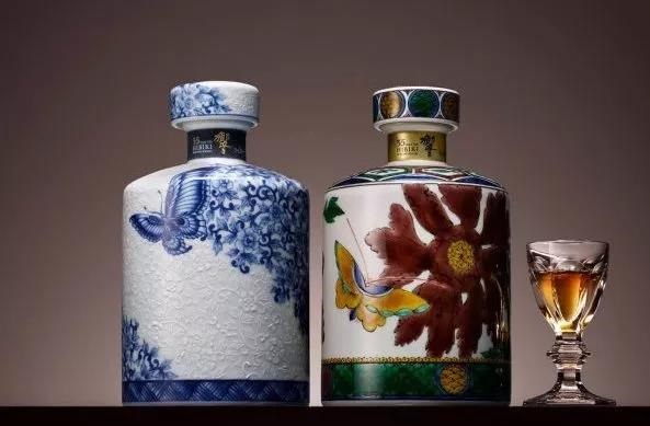 2017年,三得利為慶祝日本瓷創(chuàng)立400周年而推出了一對(duì)酒瓶,分別由有田燒及九谷燒方式制作而成,并將牡丹和蝴蝶圖案描繪在瓶身上。